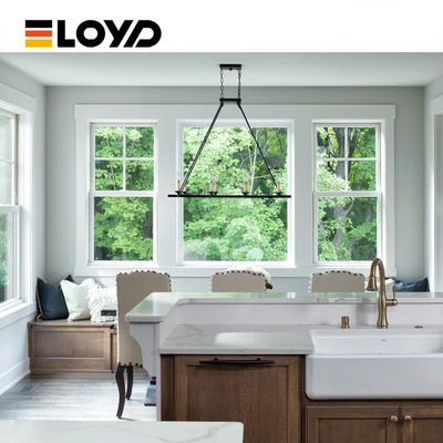 Das Minimalistische Doppelfenster mit Einzelaufhängung bietet eine saubere, stromlinienförmige Optik mit schlanken Aluminiumprofilen und großen Glasscheiben für maximales Tageslicht.